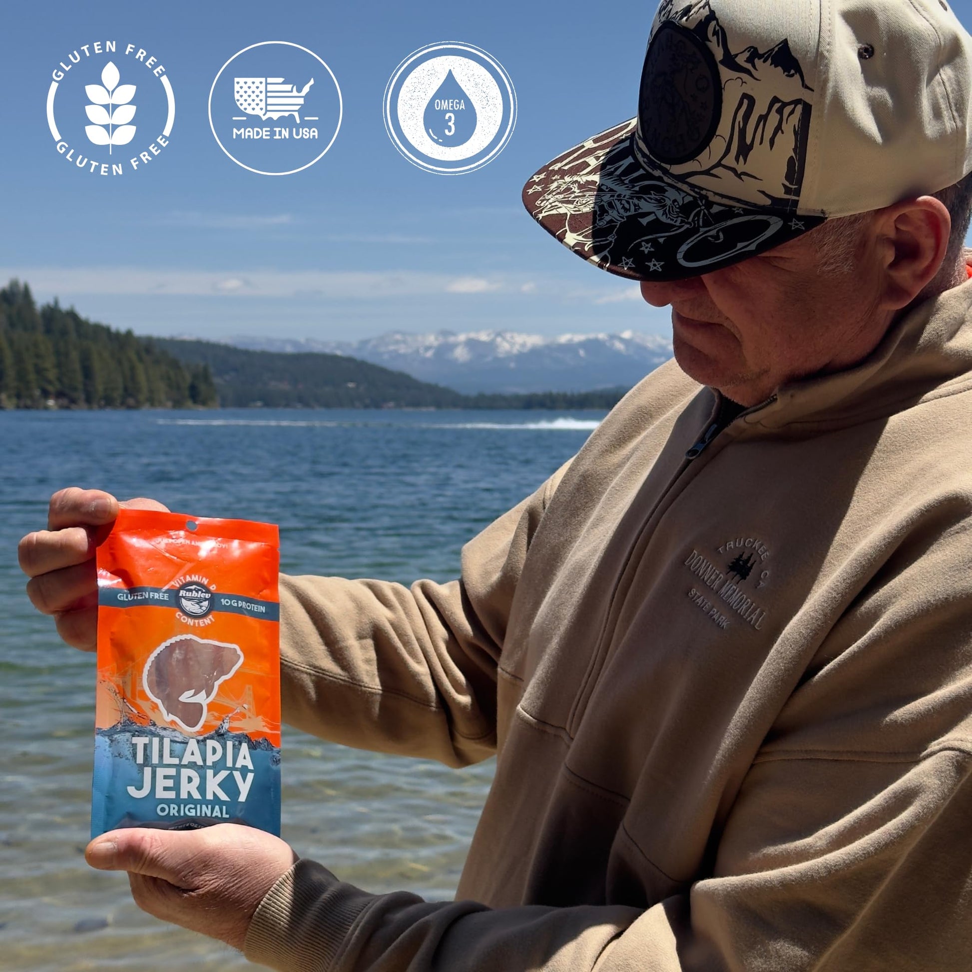 Rublev Fish Jerky - Tilapia, Original Flavor, Dried Fish Strips, Omega-3 Rich, High-Protein Snack for Humans, Keto Friendly, Gluten-Free, Low-Carb, Made in USA, 2oz
